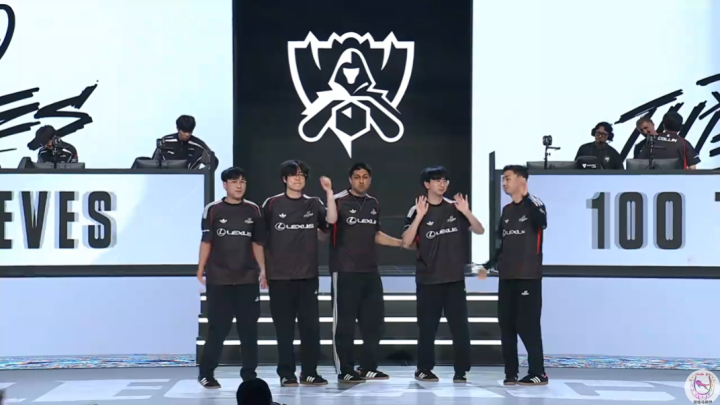 100T毫无疑问是今年S15瑞士轮的最大受害者,他们4轮抽签的对手全都是中韩队伍。第一轮打LPL冠军BLG,第二轮打TES,第三轮打HLE,第四轮打T1。上一支在瑞士轮全部遇到中韩队伍的,还要追溯到2023年S13上的KT战队。当时他们是打满了5局中韩对决,甚至最终3-2硬生生杀出血路晋级到了八强,不过也是牺牲了DK作为代价。