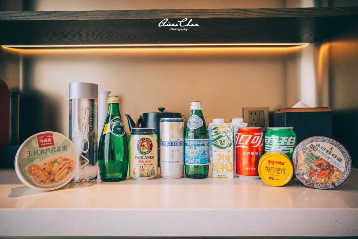 它们家的迷你吧是免费的,气泡水、软饮、啤酒等选择丰富。