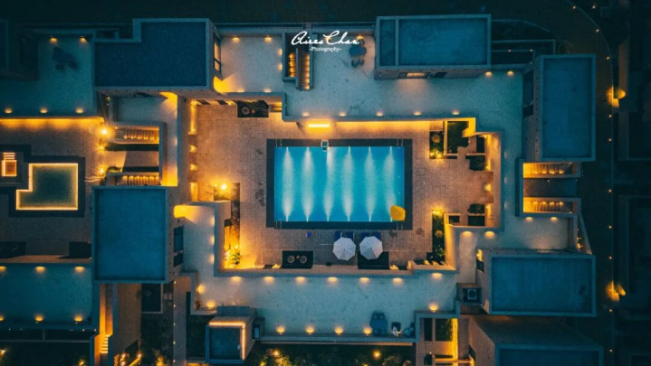 酒店一共有4个独立院落,其中3个设置有景观水池,另一个是公共泳池。