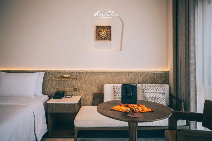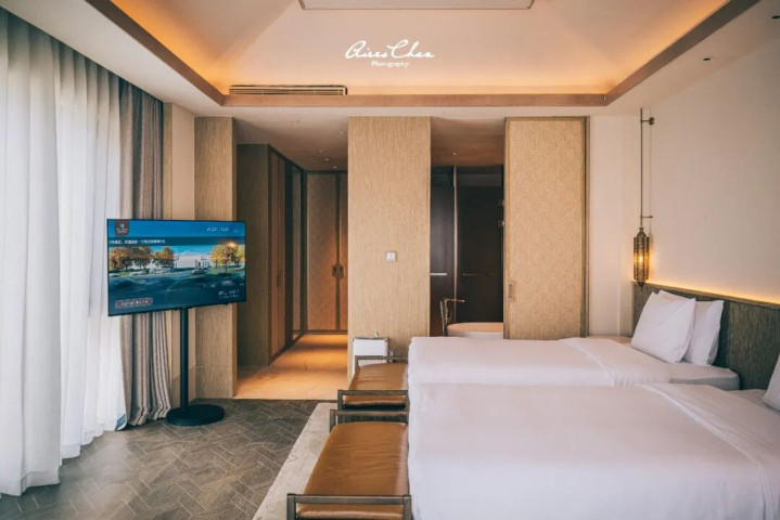 此行入住的是60-65㎡的月泉映阁双床房,和基础房型漠语听沙客房的最大区别在于客房面积更大,且大多能看到不错的池畔或中心庭院景观。