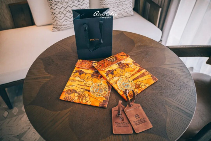 欢迎礼送了珀莱雅的护肤品、酒店的行李牌还有精致的欢迎茶点及水果。